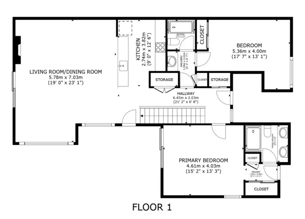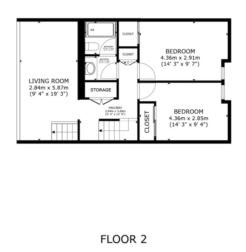 - Attached to Bedroom #2 with an optional privacy door to the living area.