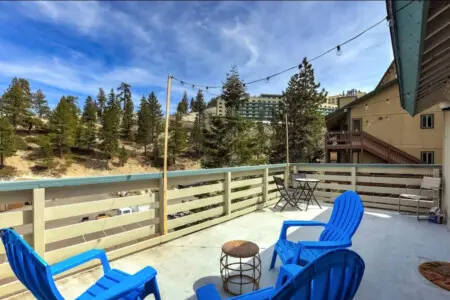 Our Pet Friendly 2BR Loft Townhome is furnished with care and located near hiking/biking trails & Heavenly's Stagecoach lift! We offer high speed Wi-Fi, a fully equipped kitchen, full bath, 1 Queen & 2 Twin beds w/ Luxury White Bedding, a wood burning fireplace, free parking, and fully stocked supplies. There is also a large balcony with pub table, Adirondack chairs, and it has a gorgeous mountain view! Your perfect home base to stay and play in Tahoe! VHRP20-1015