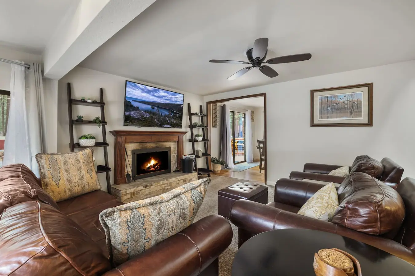 - Cozy gas fireplace, large Smart TV (~65"), and generous seating for movie night after the beach or slopes.