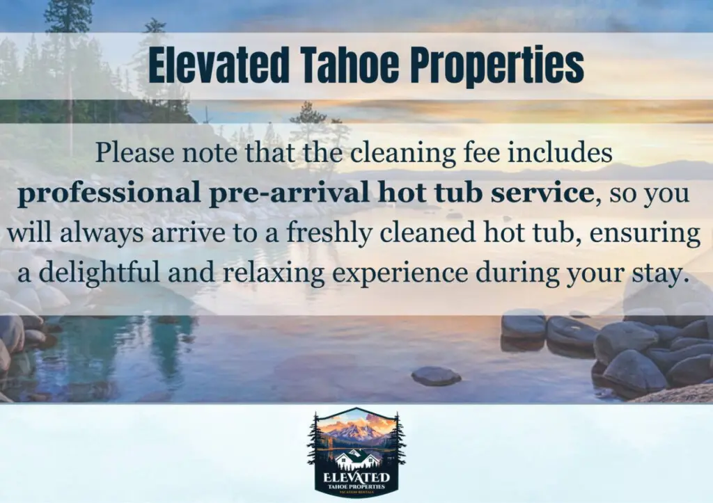 NOTE: Your cleaning fee includes professional pre-arrival hot tub service, so you will always arrive to a freshly cleaned hot tub, ensuring a delightful and relaxing experience during your stay.