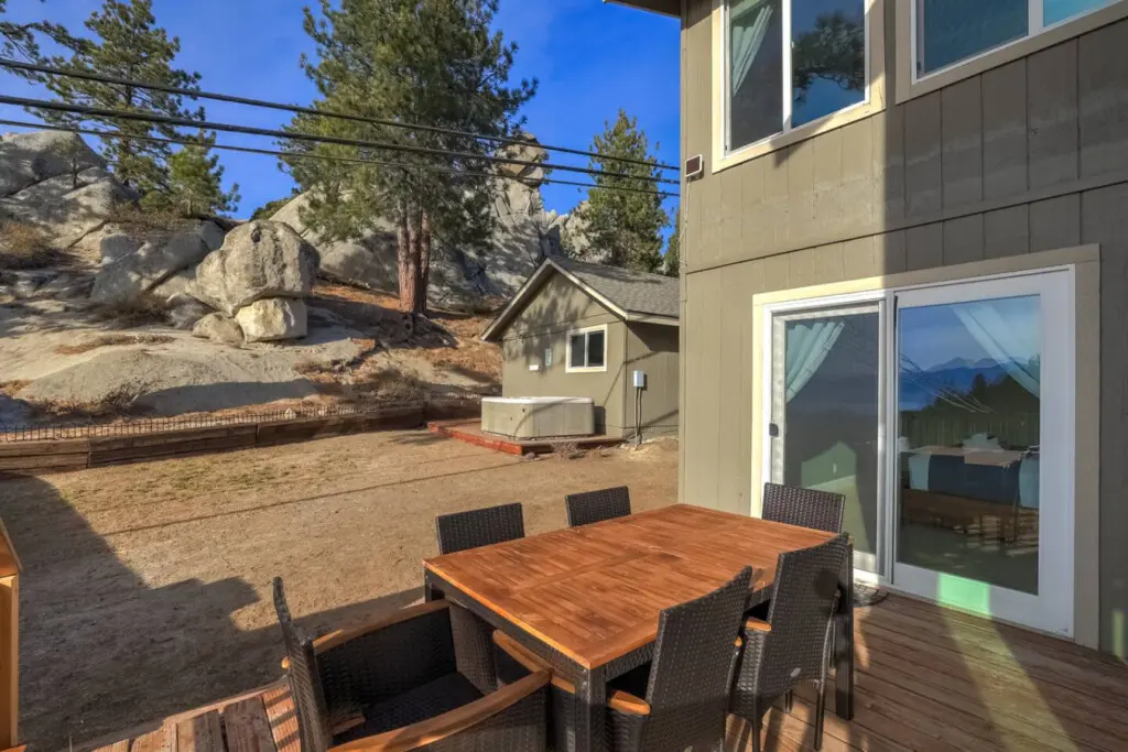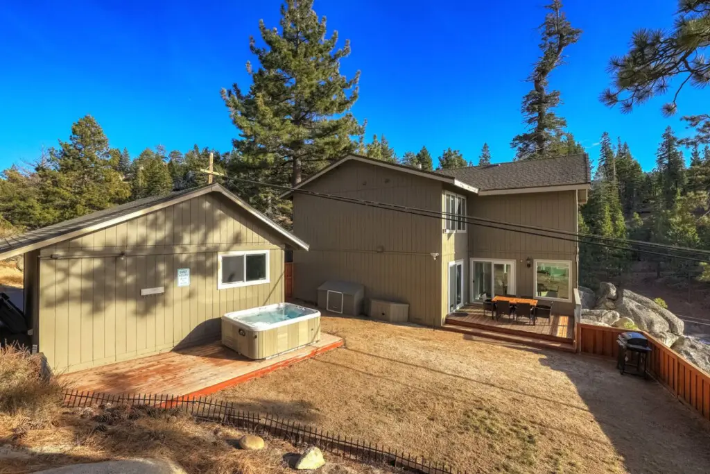Step out onto the outdoor balcony, where sweeping lake views await to enchant you time and again. Your private hot tub in the backyard is a sanctuary reserved exclusively for our cherished guests.