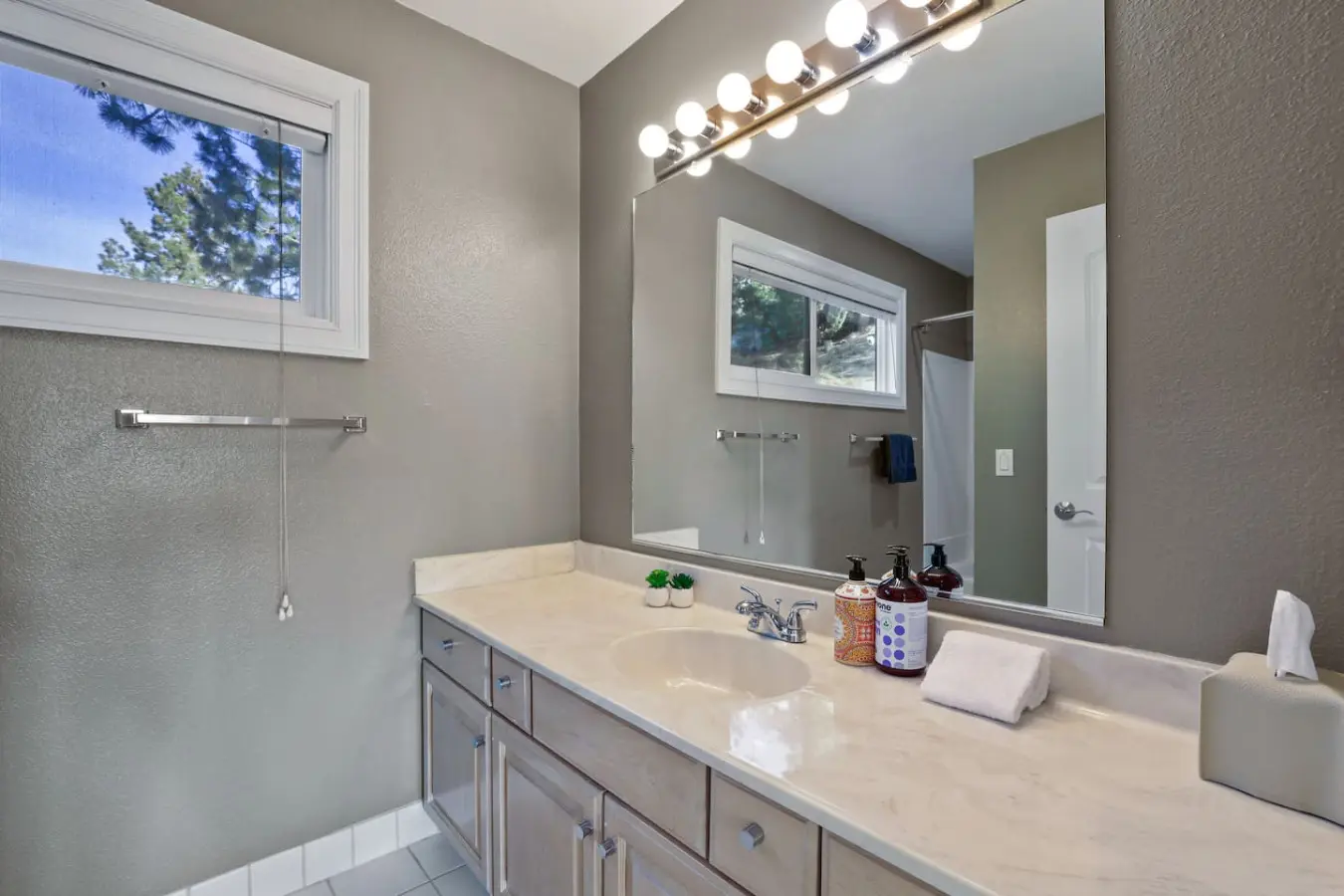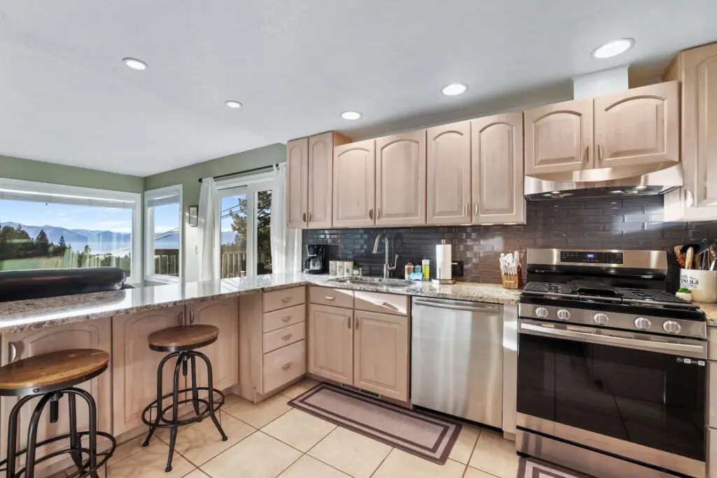 Our home is located in a quiet neighborhood on Kingsbury Grade, only four miles from town and the lake, which is incredibly convenient. In our neighborhood, just a few miles away, you'll find a full-sized grocery store (Safeway), a nail salon, post office, fitness center, coffee shop, and several restaurants. Additionally, there's a Whole Foods nearby for your grocery needs.