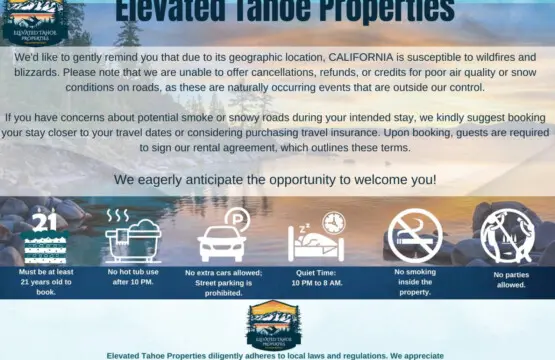 ● During your stay, please be aware that Lake Tahoe is home to bears. Keep food secure and follow local guidelines to avoid encounters.