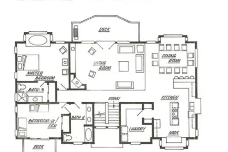 - Grand dining table seats 14, plus a sunny breakfast nook.