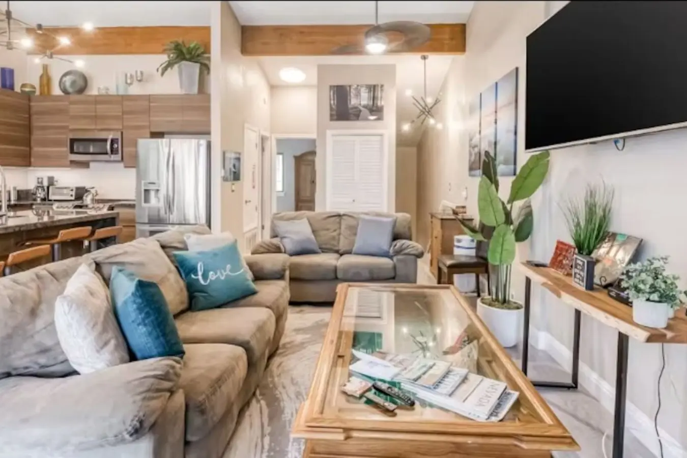 - Plush, comfy sofas facing a 65” Smart TV for movie nights and game days.