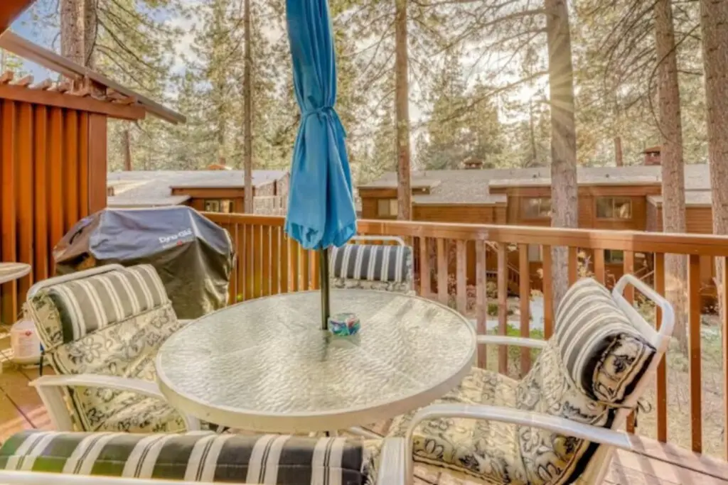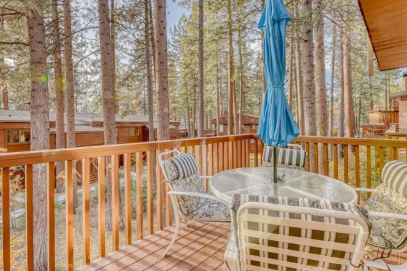 - Direct access to a private deck with a bistro set for two—perfect for morning coffee under the pines