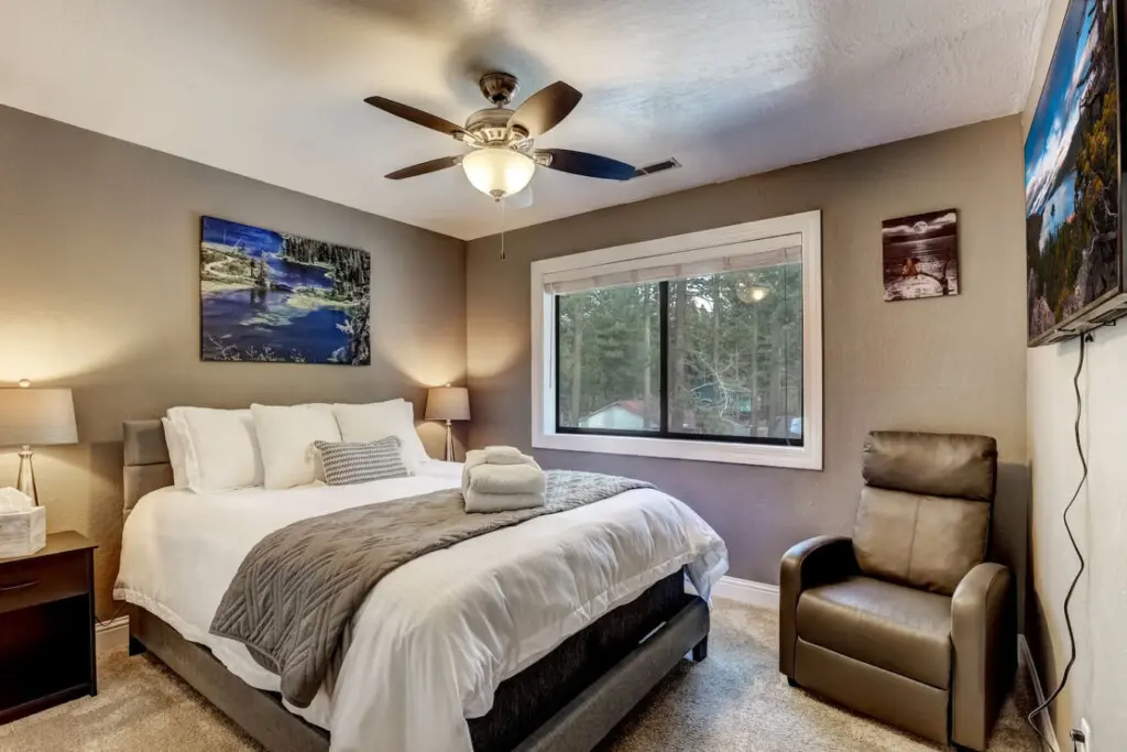 Our Home is located in a quiet neighborhood on lower Kingsbury only one mile from town and two miles to the lake, it’s so nice to be so close! We have a full sized grocery store (Safeway), a nail salon, post office, fitness center, coffee shop, and several restaurants in our neighborhood only a few miles away from us. You will find shopping, dining, and activity recommendations in the house manual upon arrival.