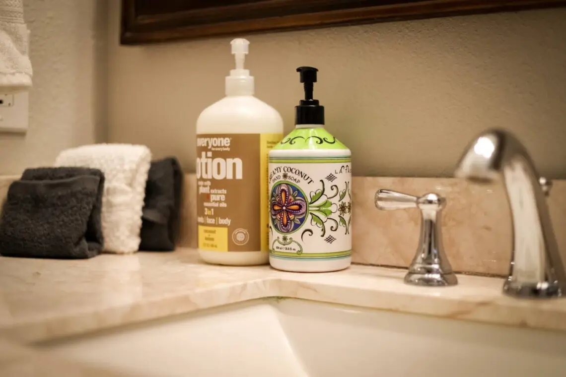 Essentials Provided: Linens, towels, shampoo, conditioner, shower gel, hand soap, lotion, TP, paper towels, coffee, tea, salt, pepper, cooking oil, dish soap, new sponge every turnover, laundry detergent, and much more!