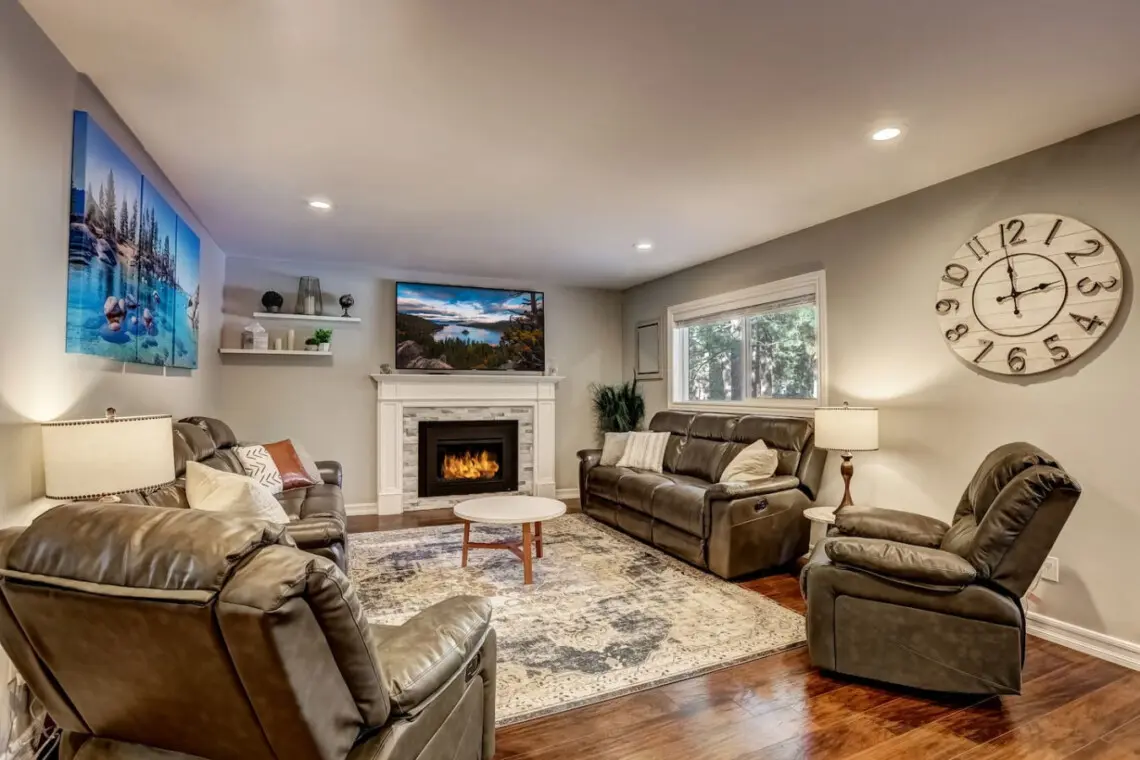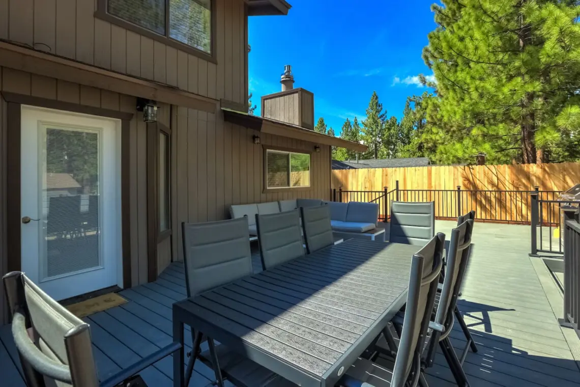 Relax and re-connect with your loved ones in our 5BR/3BA home that sleeps 10 and is close to Heavenly Village and the Lake! We offer a fully equipped Chef’s Kitchen, Luxury King Master Suite w/Ensuite Jacuzzi Tub, Ground Floor King Bedroom, three additional Queen bedrooms, Massive Back Yard w/Deck & BBQ, Opulent Living & Dining Area, High Speed Wi-Fi, fully stocked supplies and all the comforts of home. Come and let us take care of you! Permit #08401884