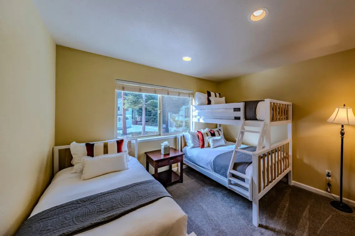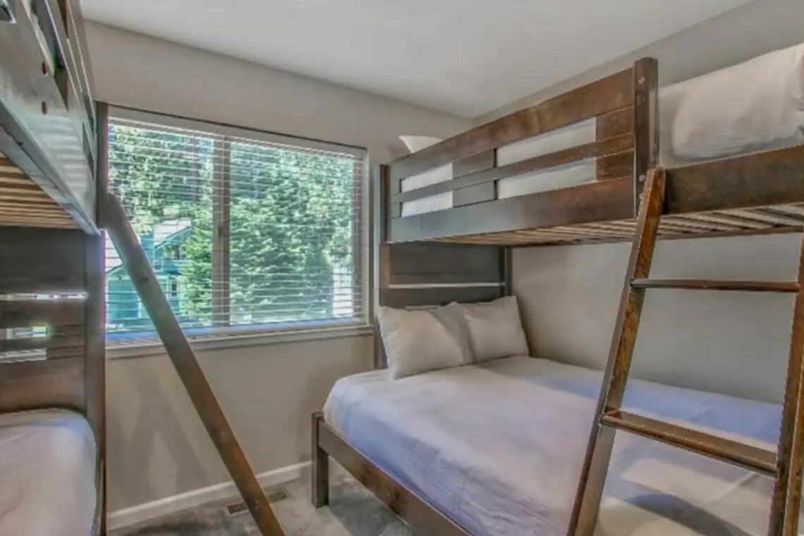 – Family-friendly setup with a twin bed + a twin-over-full bunk—great for kids, cousins, or a small group.