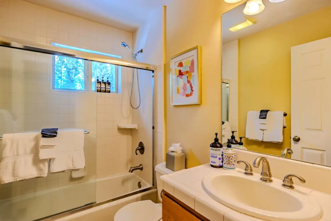 – Full bathroom with an enclosed shower—perfect for rinsing off after the hot tub or a beach day.