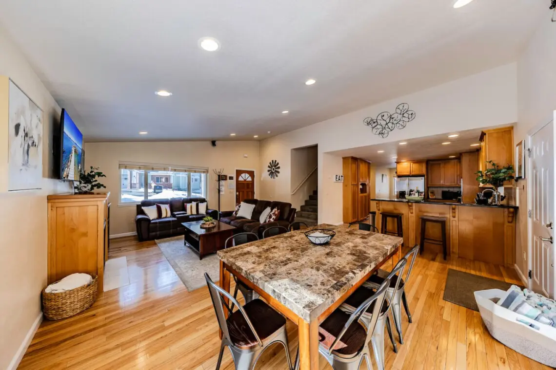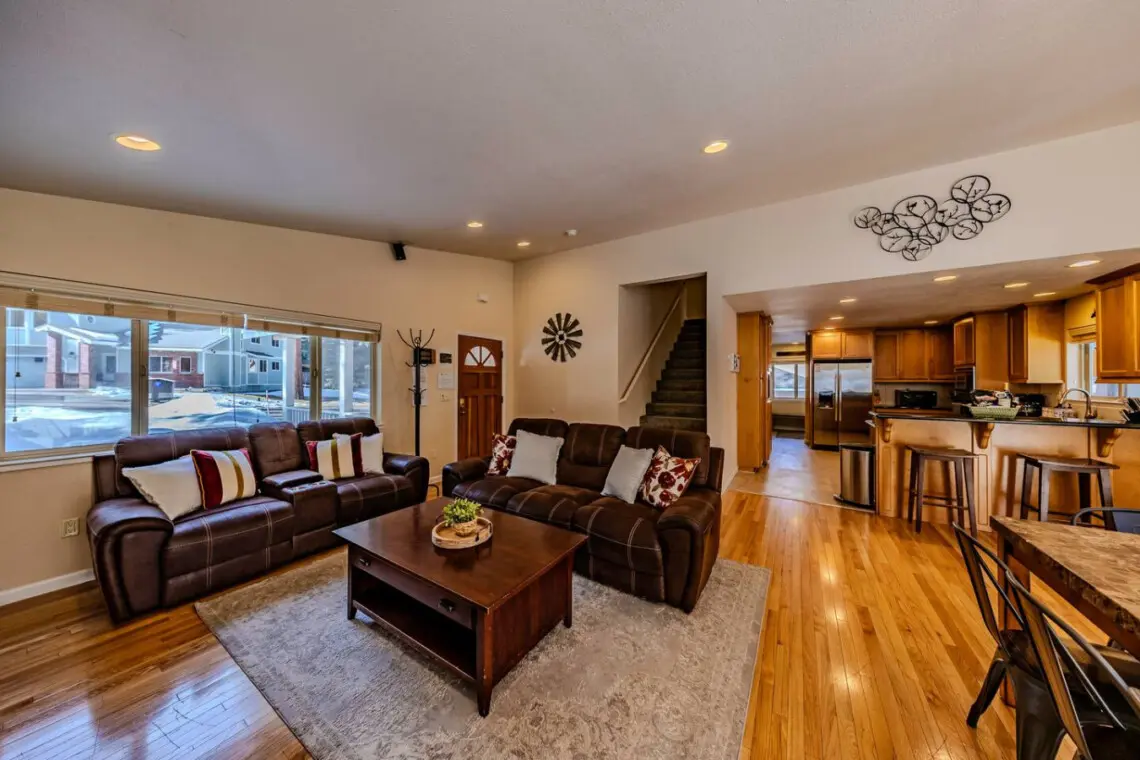 Set in the highly desirable Montgomery Estates, this contemporary home offers a bright, welcoming atmosphere. Just minutes from scenic trails, ski resorts, and nightlife, it’s perfectly located for year-round adventure. Relax by the gas fireplace, lounge in plush recliners, or unwind in the private 8-person hot tub. With modern finishes, spacious bedrooms, and easy access to skiing, dining, and trails, everything is designed for comfort and effortless convenience.