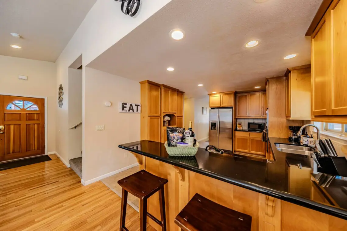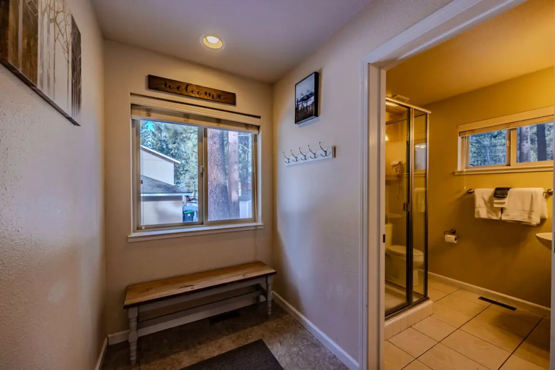 – Convenient bench + hooks area for boots, jackets, helmets, and Tahoe gear—keeps the main space clutter-free.