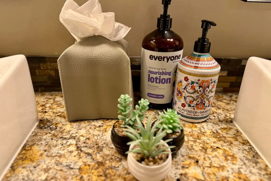 ● Essentials Provided: Linens, towels, shampoo, conditioner, shower gel, hand soap, lotion, TP, paper towels, coffee, tea, salt, pepper, cooking oil, dish soap, new sponge every turnover, laundry detergent, and much more!