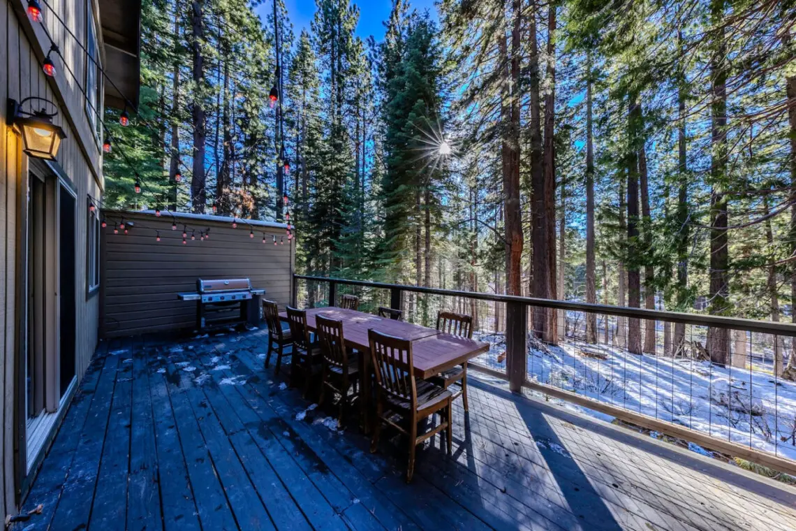 – Upper Deck (Balcony #1): Off the upstairs game lounge, with outdoor dining for 6 and a BBQ—plus direct views of Heavenly’s slopes.