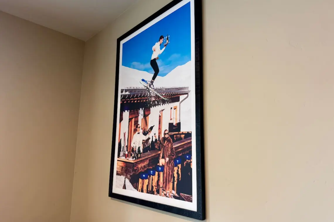 – 65” Smart TV (mounted with swivel) for movie night or big games.