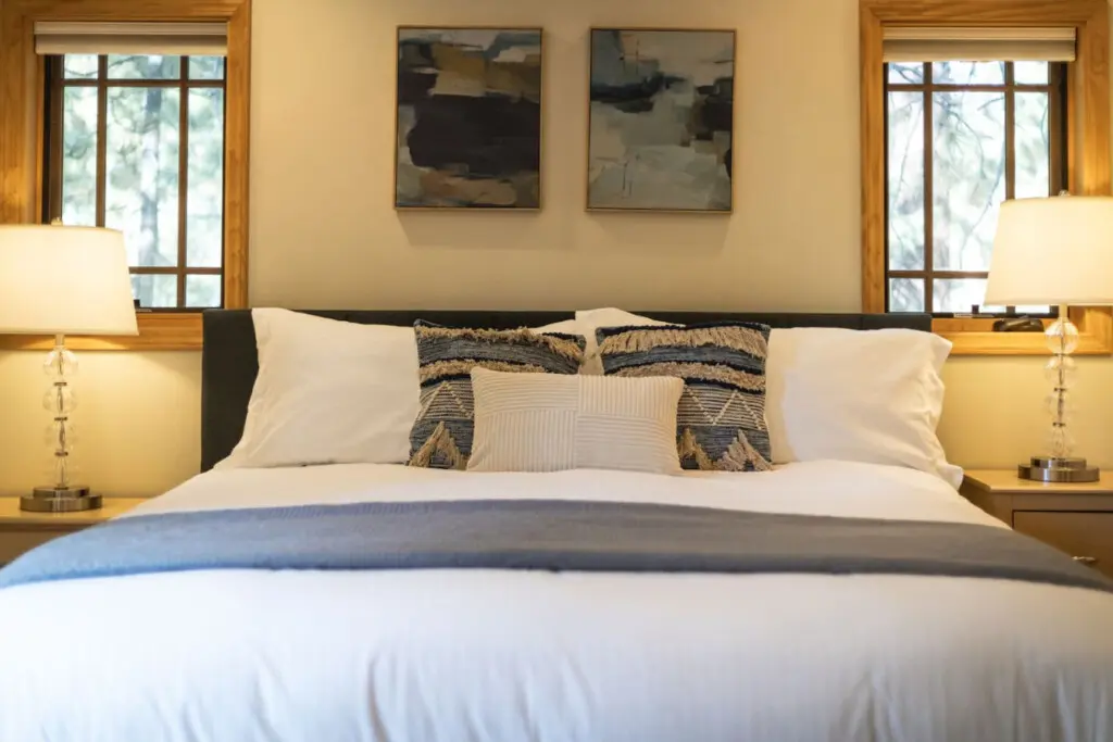 – Queen Bed : Featuring luxurious white bedding.