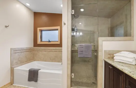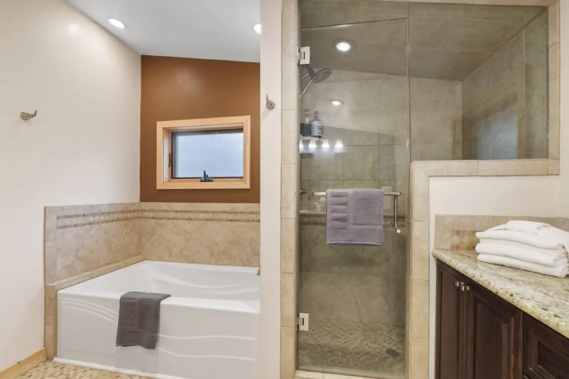 – Large Soaking Tub: Perfect for relaxation.