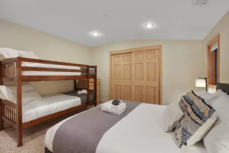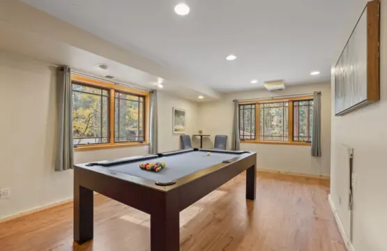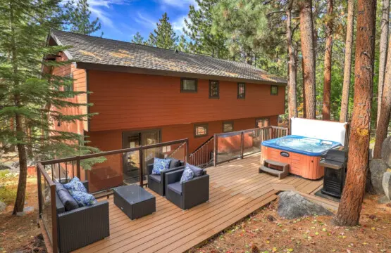 Welcome to our magnificent three-story retreat nestled in the hills of South Lake Tahoe! This spacious abode boasts luxury and comfort across every level, promising an unforgettable stay for families and groups alike. Features include a top floor sanctuary, a gourmet kitchen & dining area, a game/movie room, Patio w/BBQ & Hot Tub, tasteful design, and luxury white bedding. With five bedrooms including two King beds, a bunk bed, and three Queen beds, there’s room for everyone to unwind. DSTR1177P