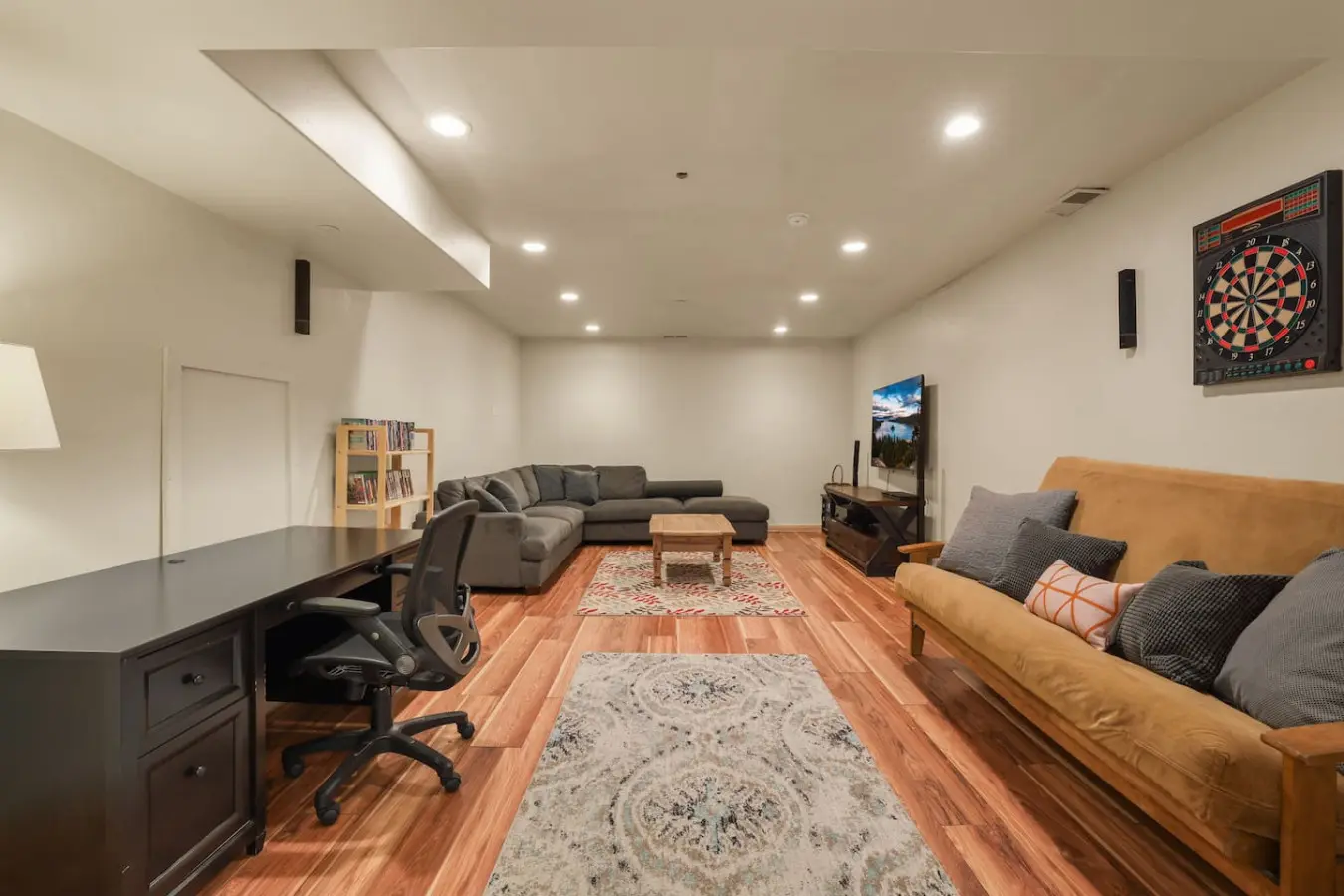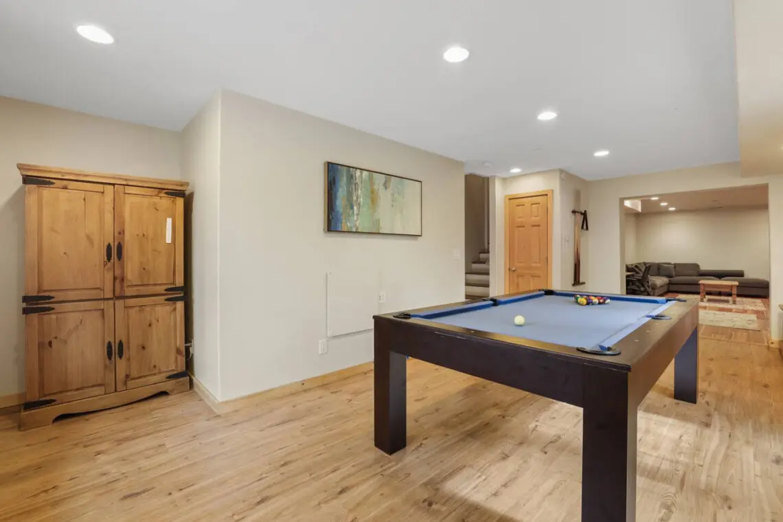 – Entertainment-friendly game/movie room