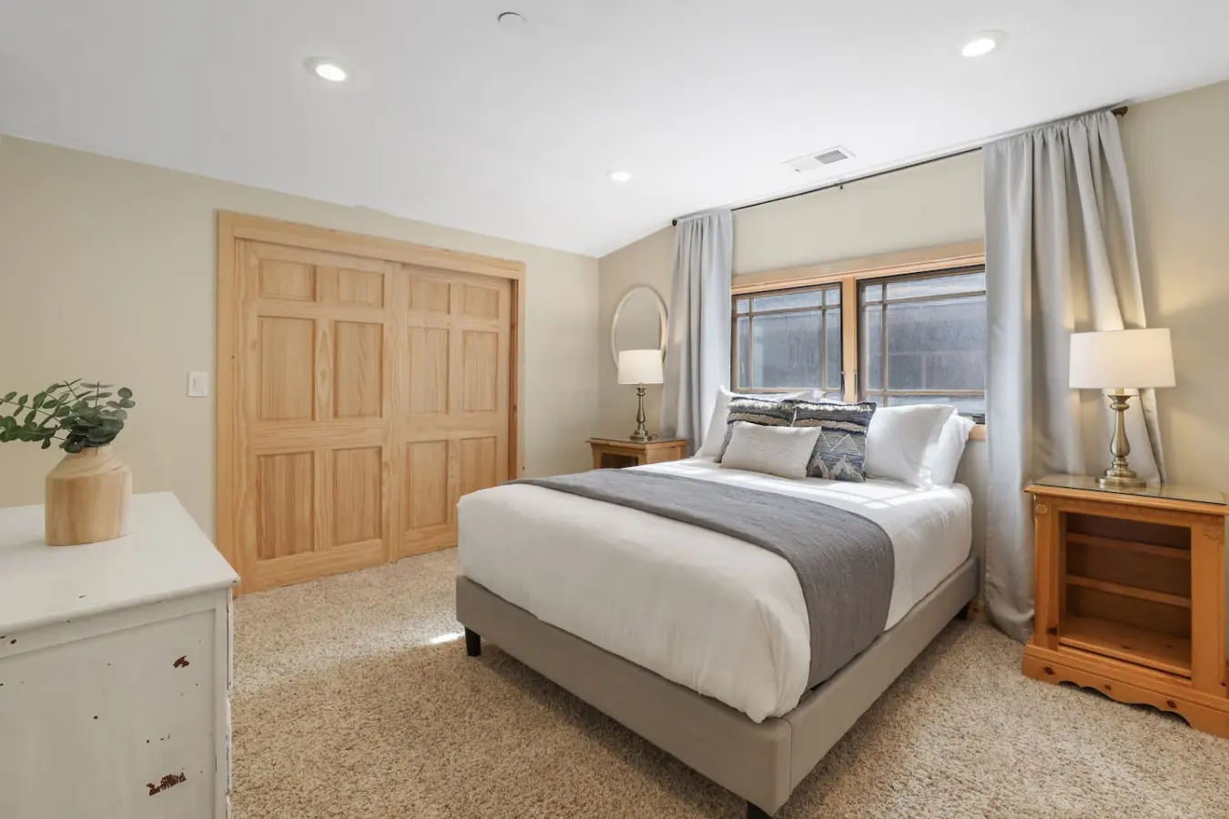 – Queen Bed: Spacious and comfortable.