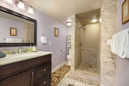– Lowest level Master Bedroom w/ Queen bed & Full Ensuite Bath