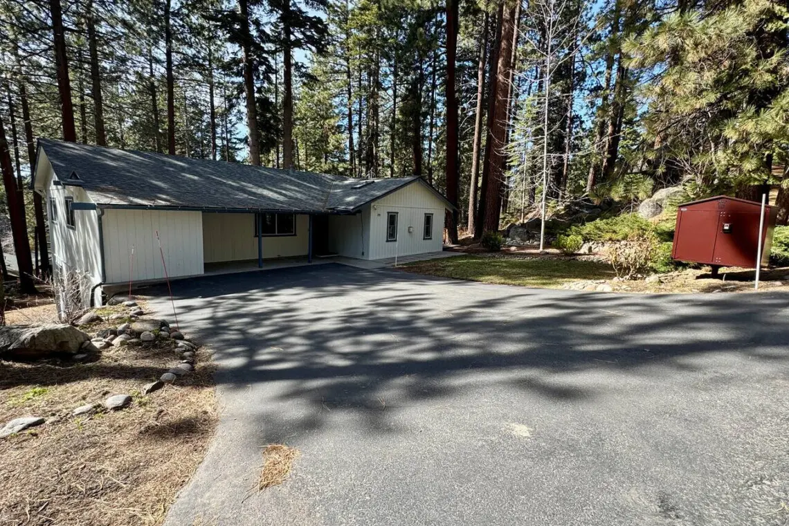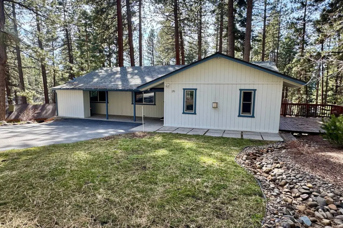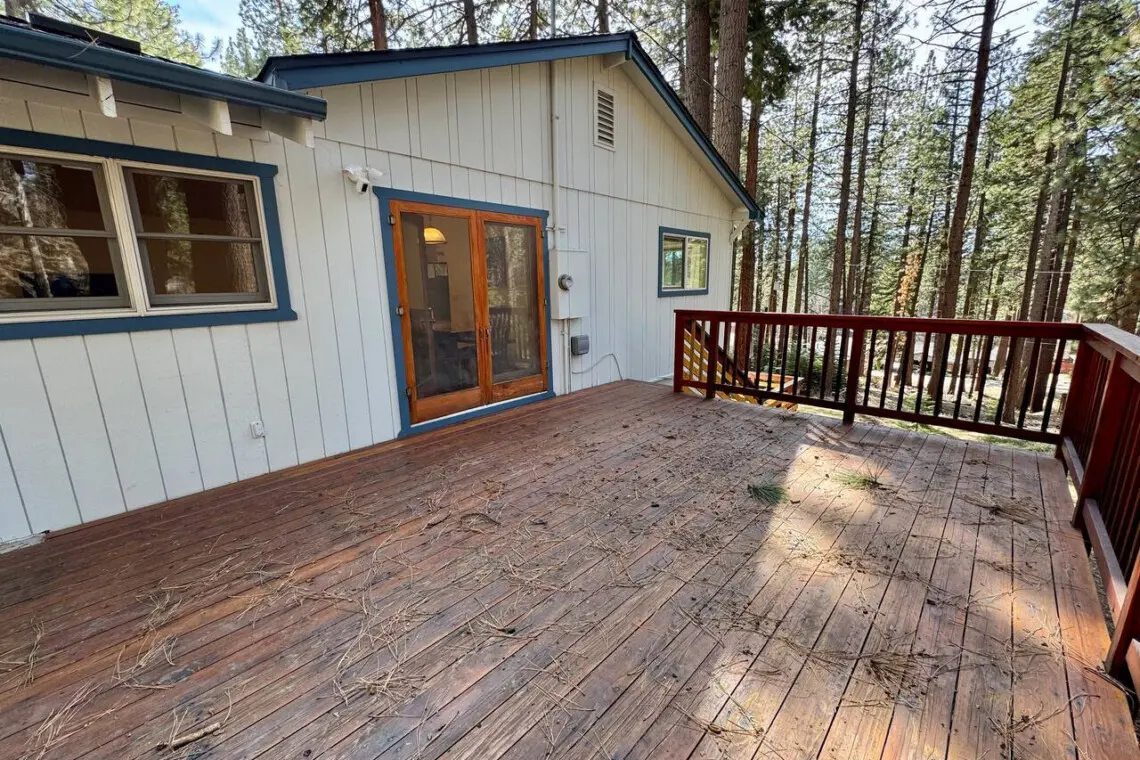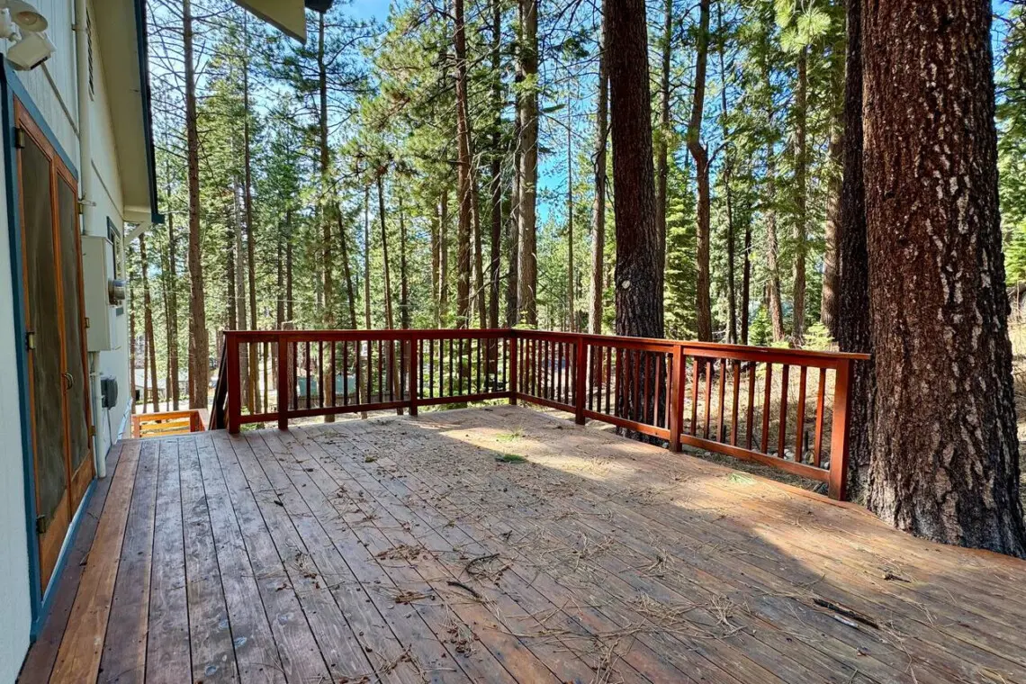 Step out onto the spacious wooden deck and breathe in the fresh Tahoe air. Tucked into a grove of towering pines and framed by natural rock formations, this outdoor space offers a truly immersive nature experience.