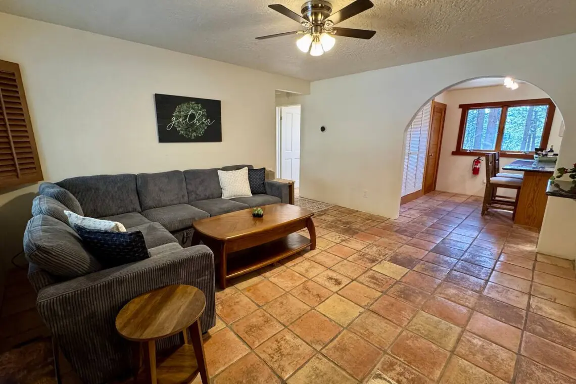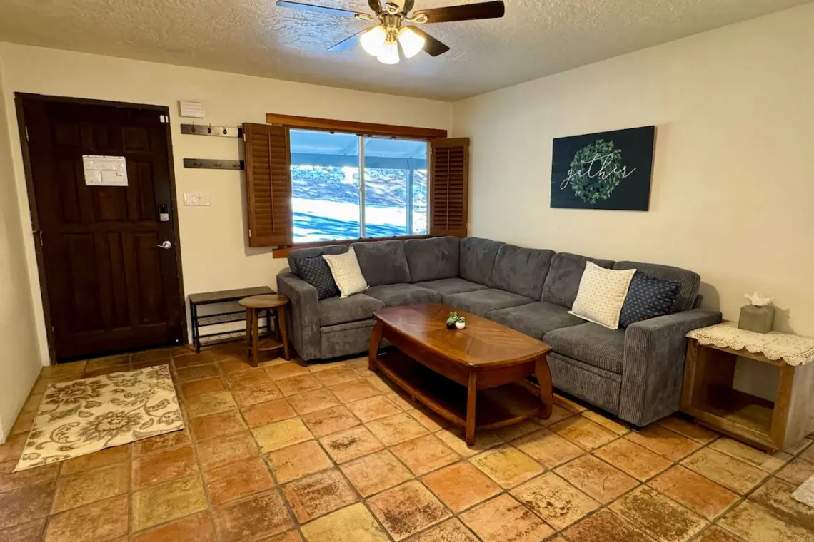 – Step inside to a cute little lounge nook right by the front door—perfect for kicking off boots, unloading groceries, or relaxing with a book.