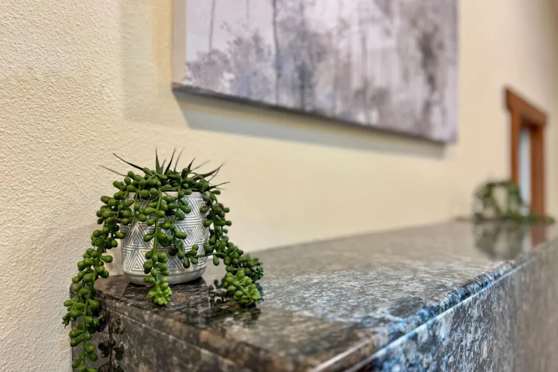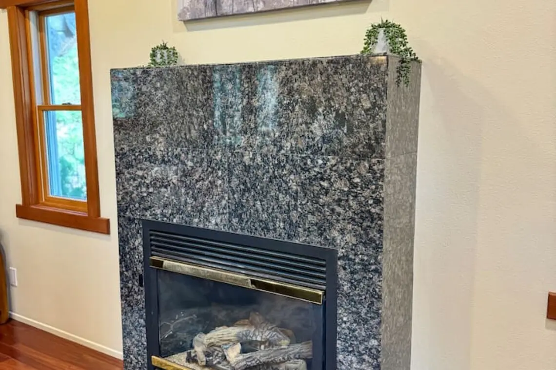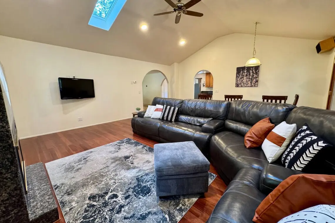 – Sink into the spacious couch, fire up the gas fireplace, and enjoy your favorite shows on the wall-mounted Smart TV.