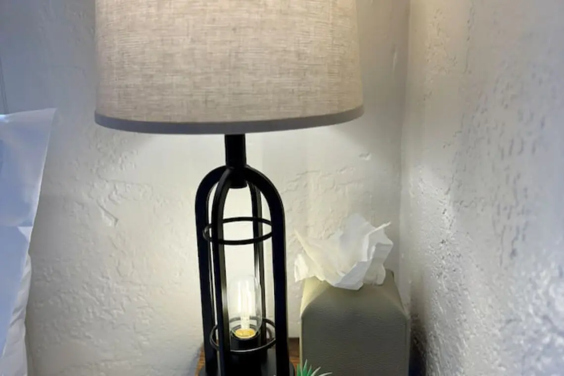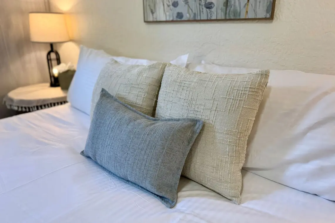 – King bed with two nightstands and a bedside charging station for easy device charging.