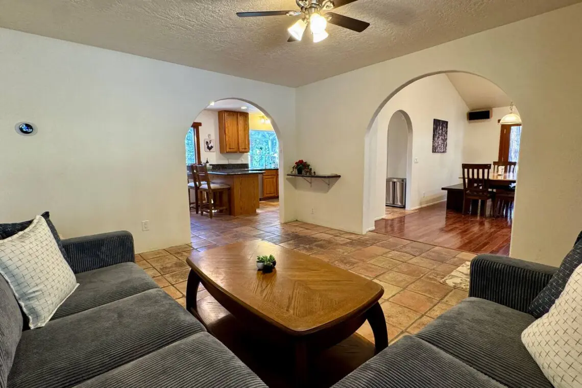 This is a two-story, 5-bedroom home. The upper level (3 bedrooms) is the vacation rental space for guests, while the lower level (2 bedrooms) is used by the homeowners when they are in town. The owners stay there part-time and have a completely separate entrance, so your space remains private during your stay.