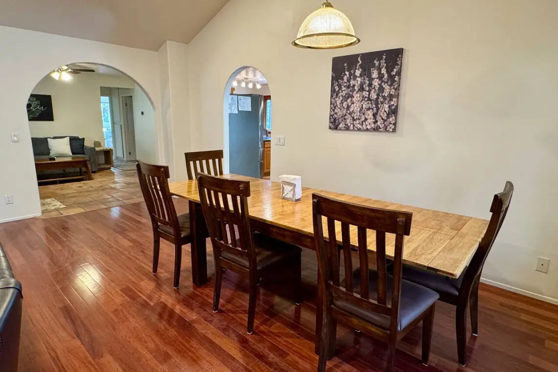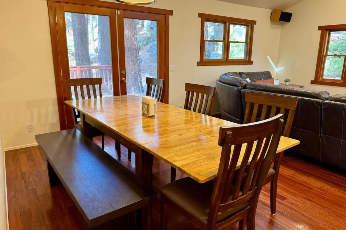 – Dining table seats 8, ideal for family meals, game nights, or planning tomorrow’s adventures.
