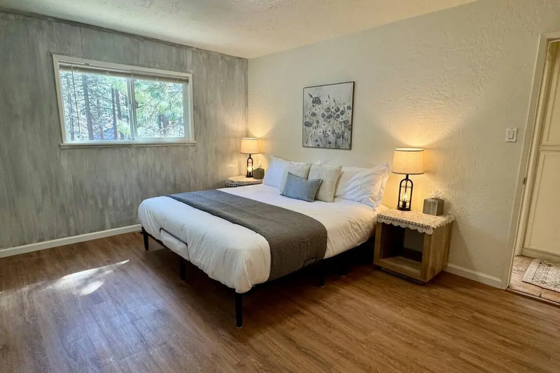– King bed with two nightstands, charging station, and closet storage—great for couples or friends traveling together.