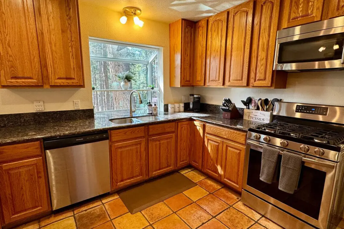 – Dishwasher | Stove/Oven | Microwave | Full-size fridge