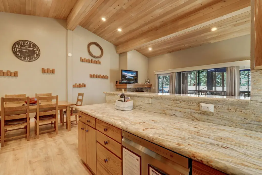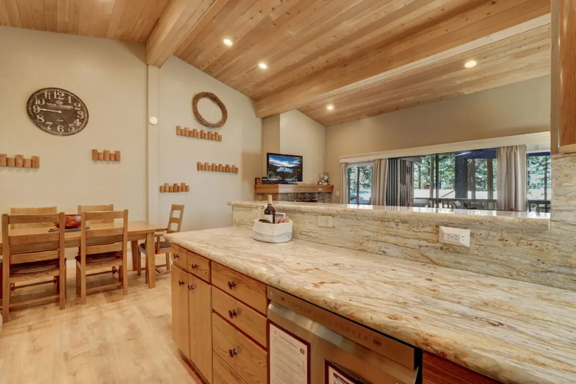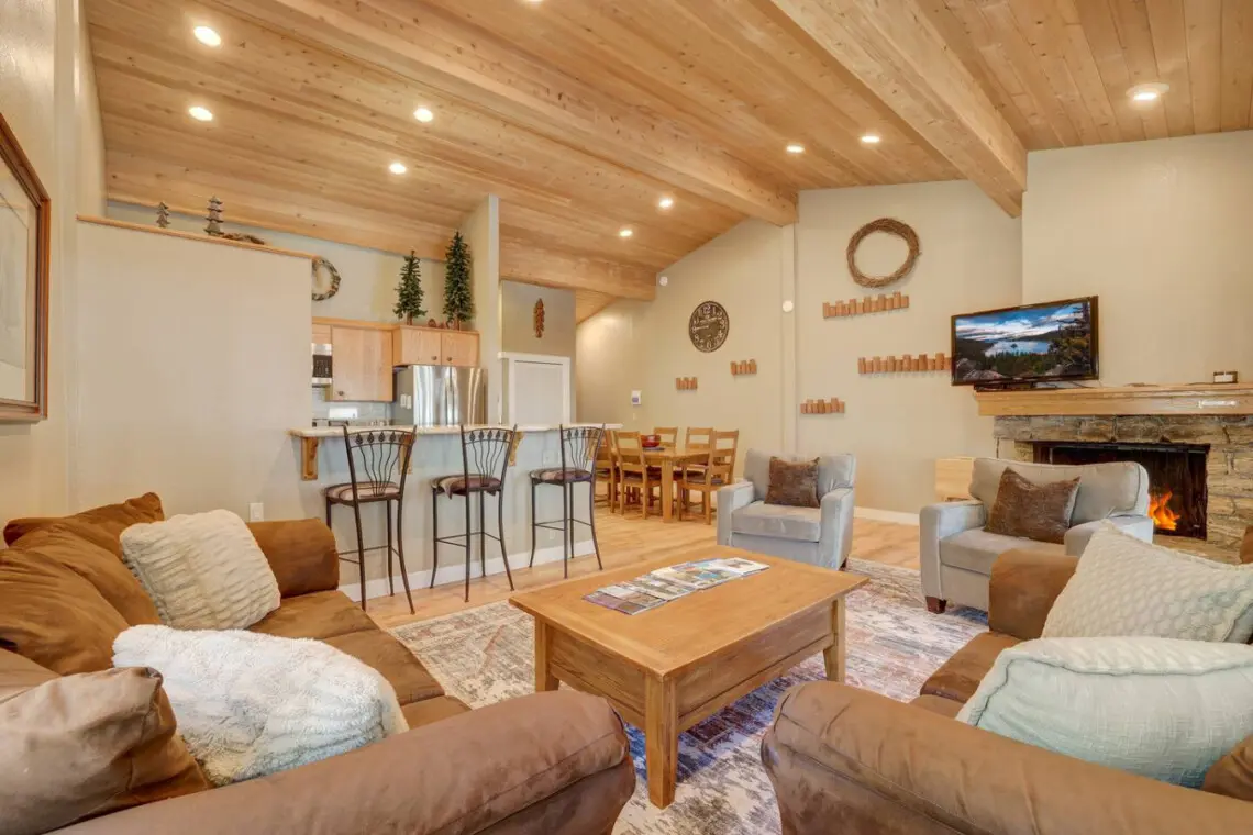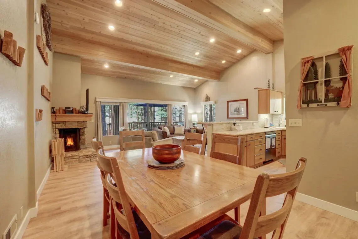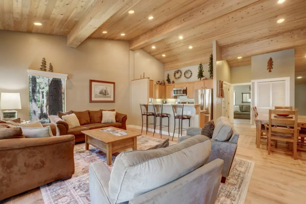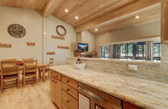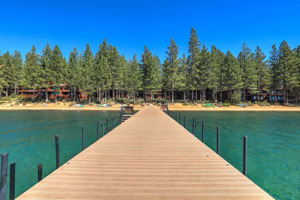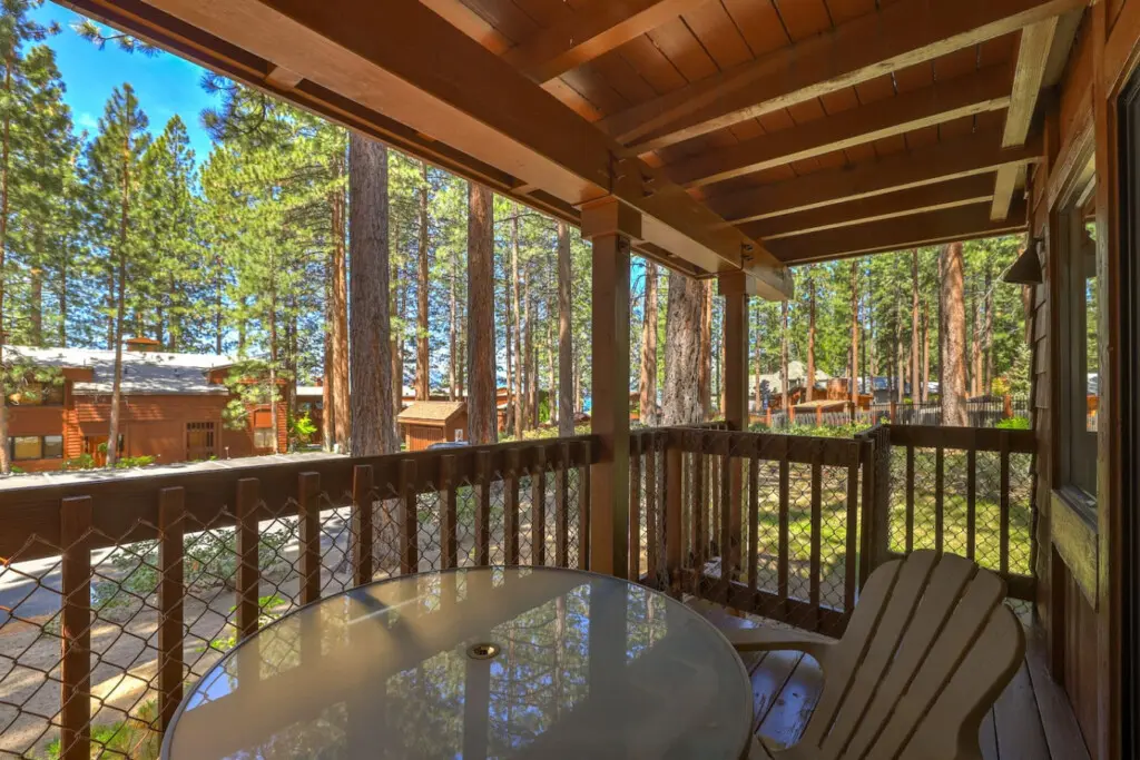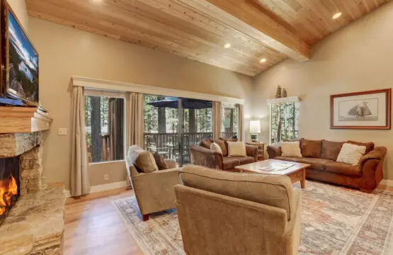 Retreat to this tranquil Pinewild condo just steps from Lake Tahoe’s shores and private beach access. Unwind on the spacious deck with a BBQ, explore forested walking paths, or enjoy a match on the nearby tennis courts. Inside, you’ll find open-beam ceilings, upgraded appliances, a gas fireplace, and inviting living spaces—perfect for couples, families, or anyone seeking a peaceful lakeside escape.