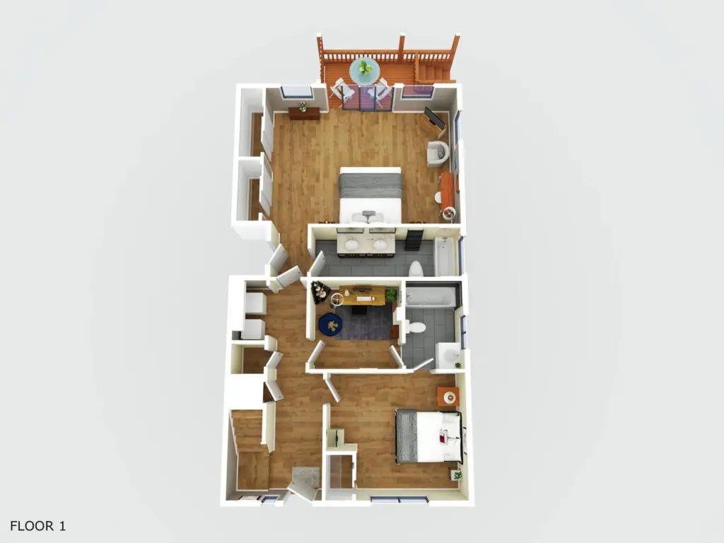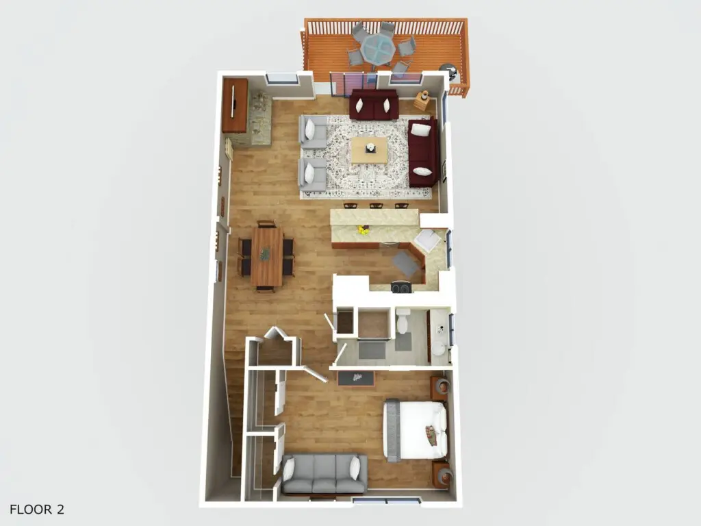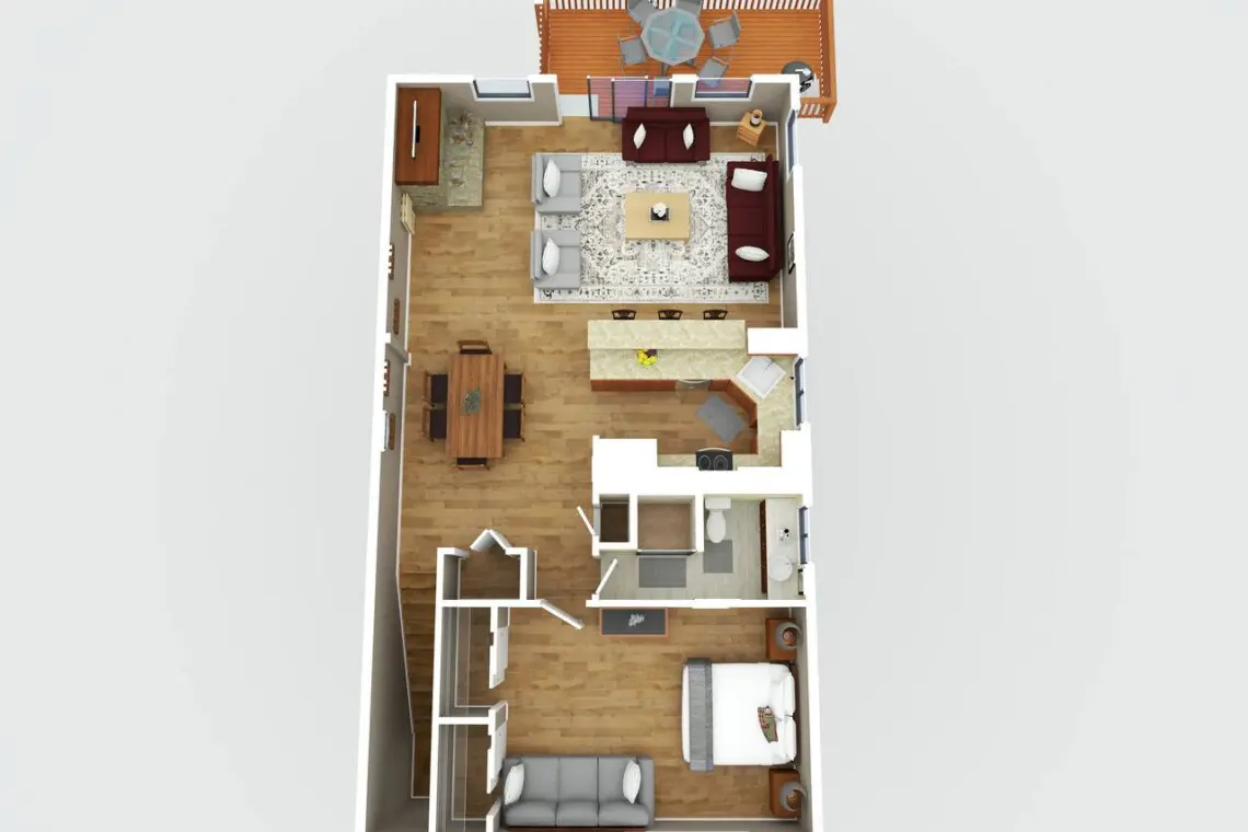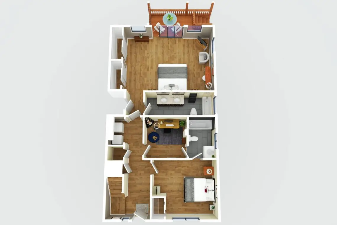 – Grill up a feast or sip wine on the upper-level balcony with seating for four.
