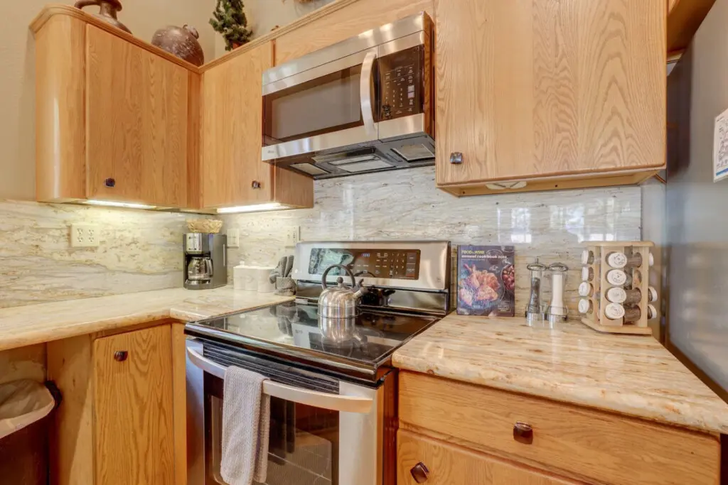 – Flat-screen TV, and cozy bedding—perfect for a relaxing mountain getaway.