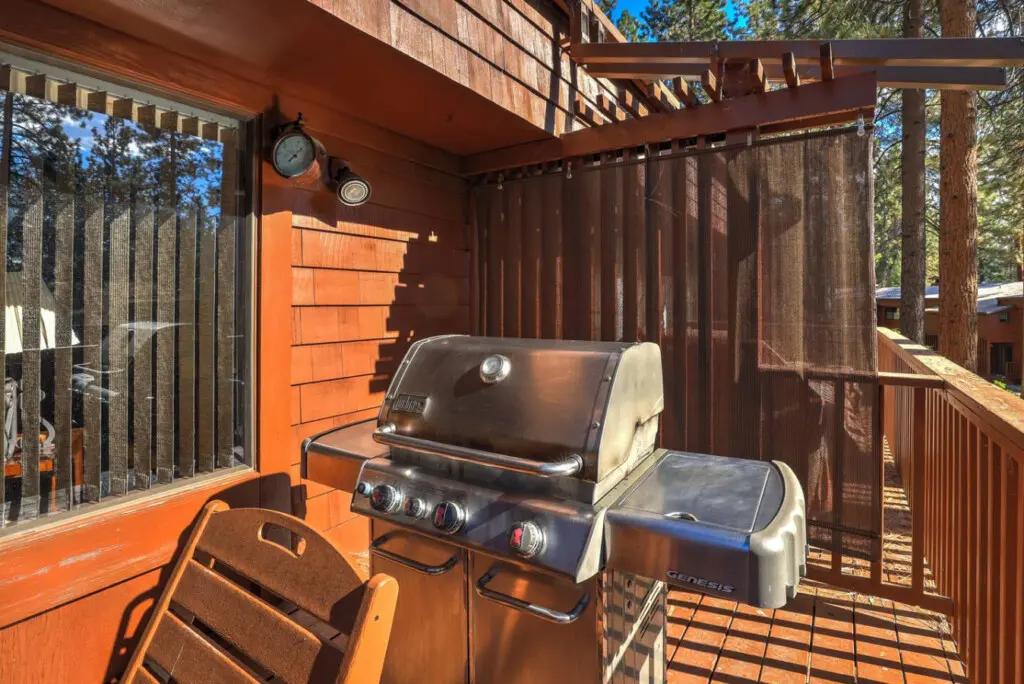 – Stainless steel BBQ grill makes alfresco meals a breeze.