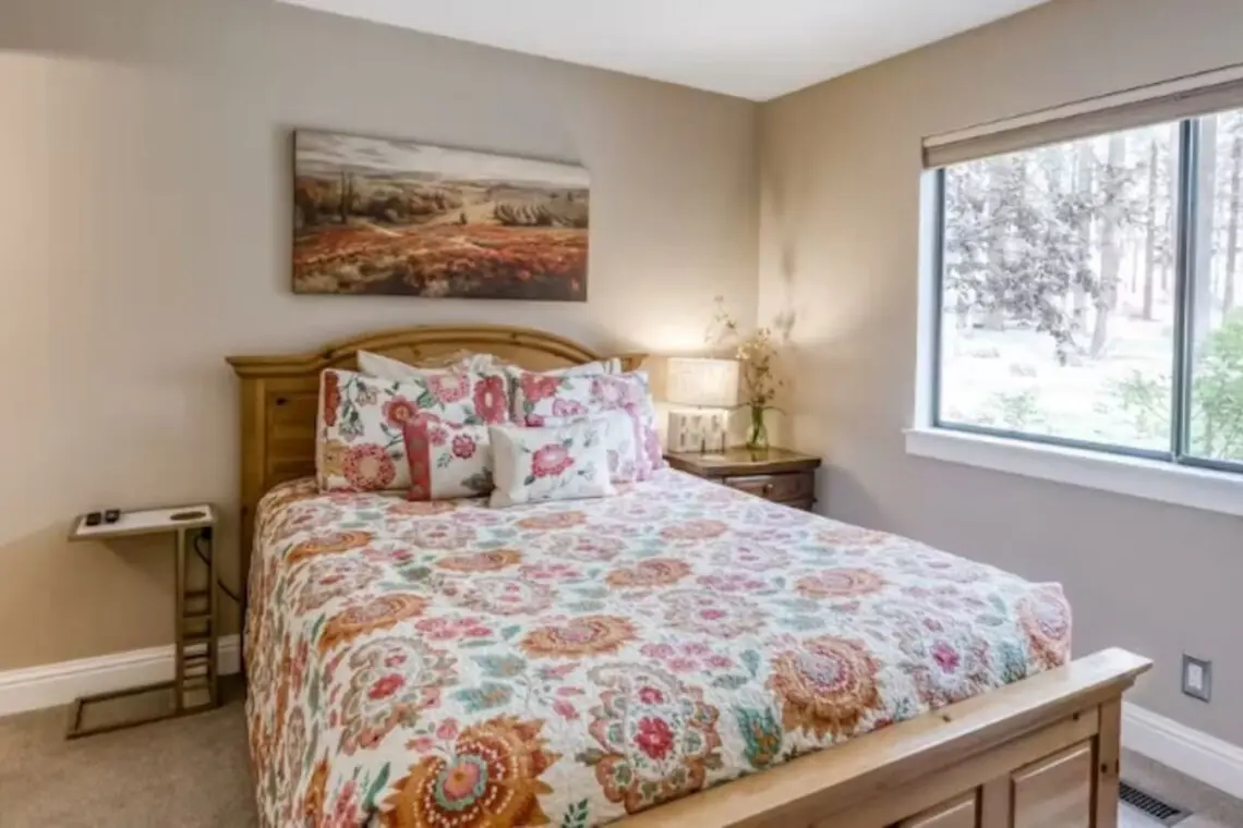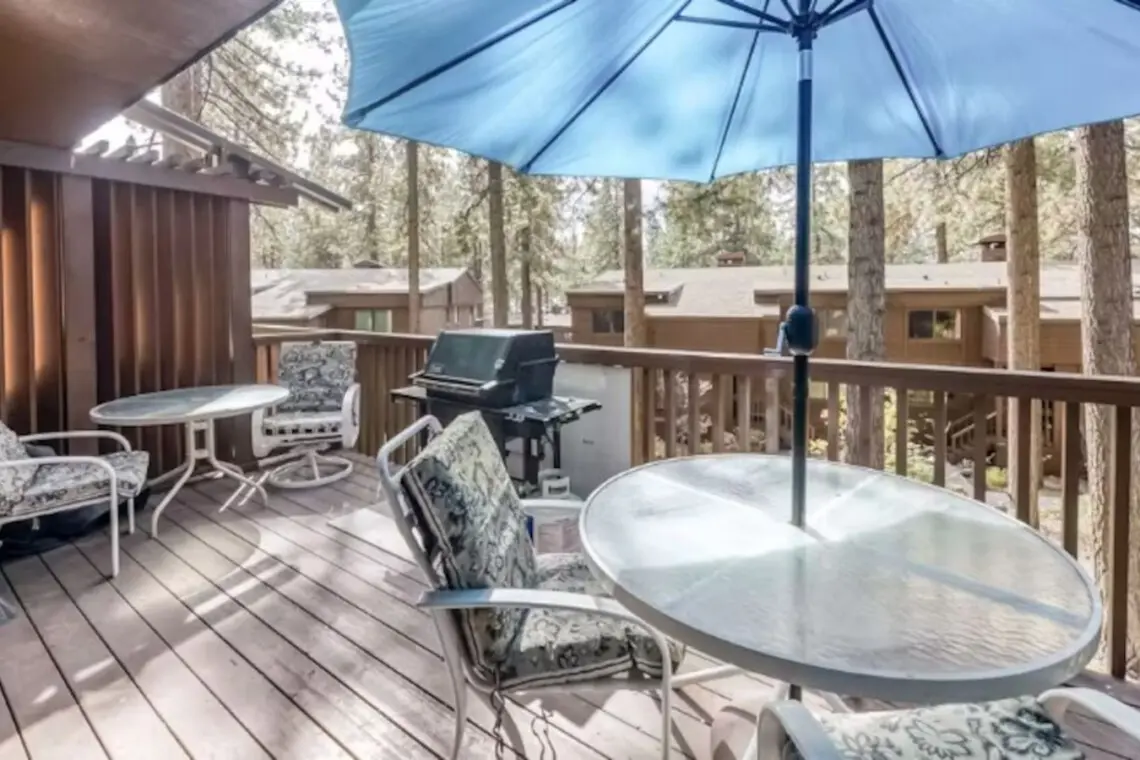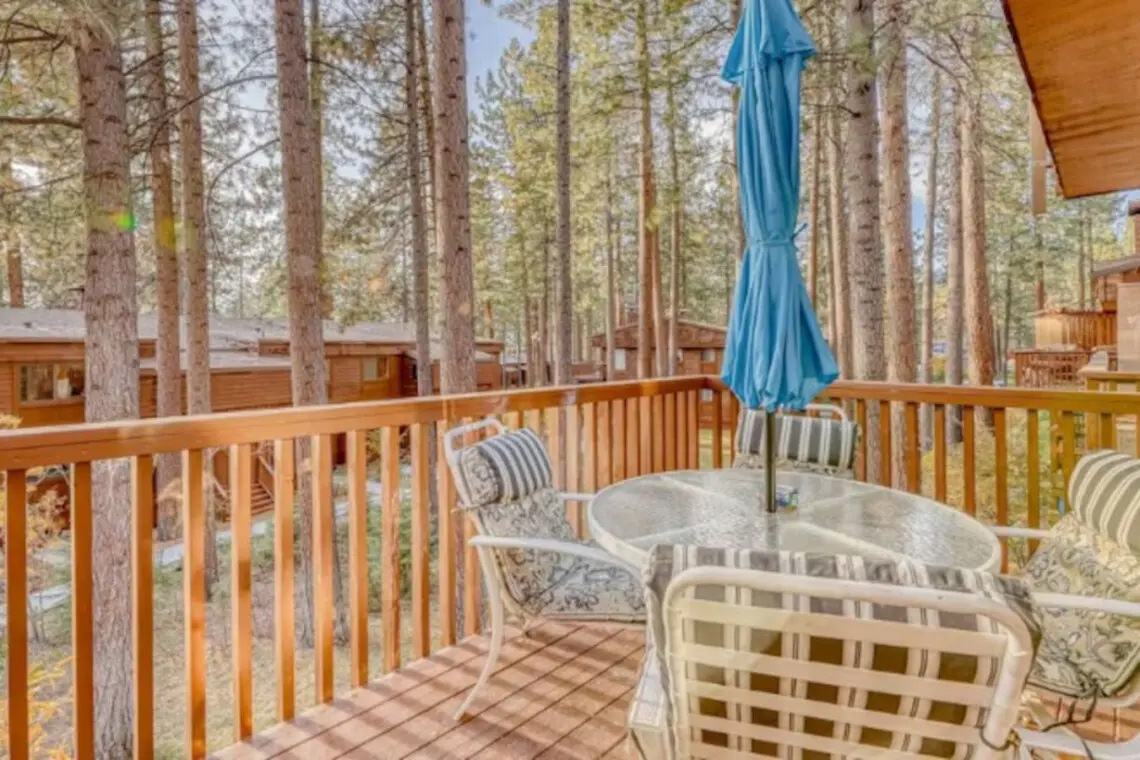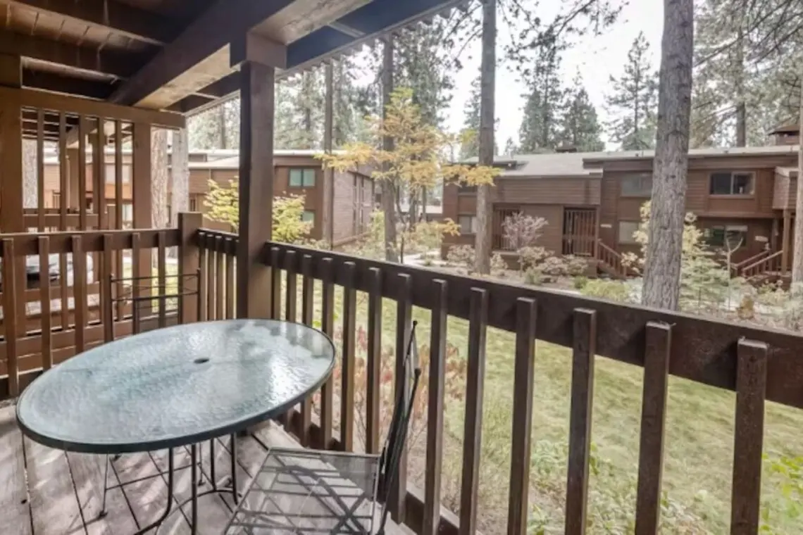 – Direct access to a private deck with a bistro set for two—perfect for morning coffee under the pines