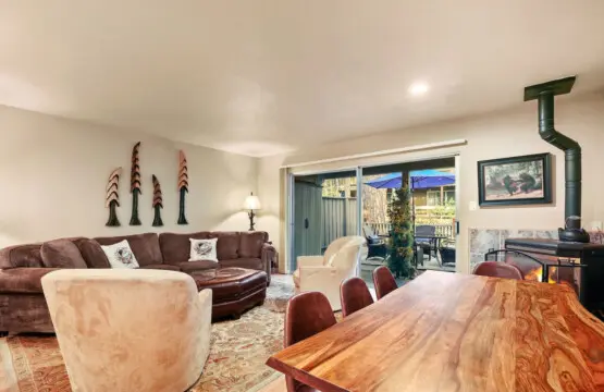 – Comfortable furniture, large TV w/Amazon Firestick, and fireplace in the living room