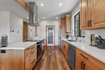 – Stainless steel appliances, including a state-of-the-art oven and range hood, ensure you have all the tools needed for a gourmet cooking experience.