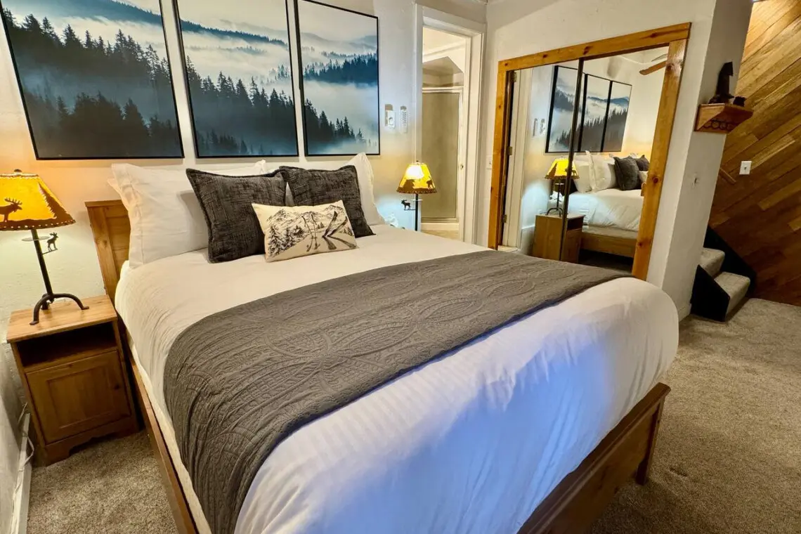 – Cozy Queen bed—quiet, comfortable, and tucked downstairs for a great night’s sleep.