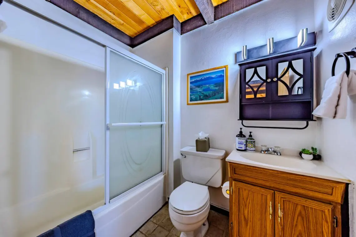 – Full bathroom with a tub/shower combo, toilet, and single-basin sink—super convenient for guests sleeping upstairs.